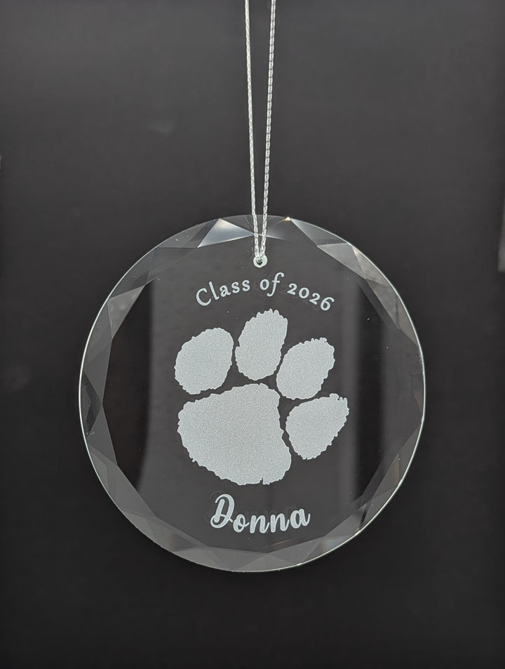Personalized Glass Christmas Ornament: Laser Etched Tiger Paw